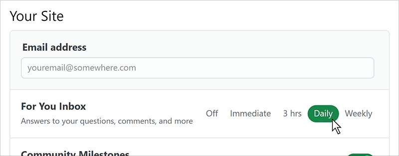 - Set how often you'd like to receive For You Inbox alerts by email (for example: Daily).