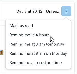 You can set reminders to complete For You tasks later. Click the three dots button in the upper-right corner of any alert to choose a preset reminder. You can also set a custom time and date to receive a reminder.
