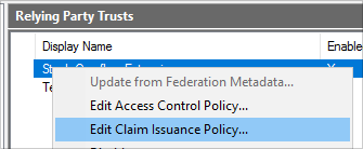 1. Right-click your new Relying Party Trust and select Edit Claim Issuance Policy.