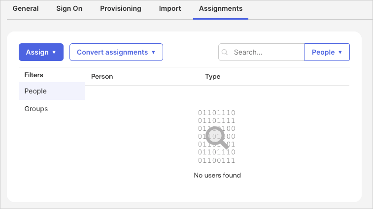 On the Okta "Assignments" tab, assign your users (and/or groups) with the Assign button.