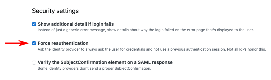- Under "Security settings", check Force reauthentication.