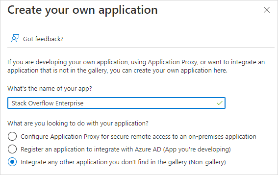 Enter a name for your app, such as "Stack Internal Enterprise".