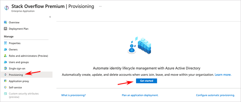 2. Click Provisioning in the left-hand menu, then Get started.