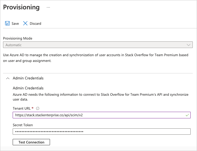 • Tenant URL Set to https://[your_site].stackenterprise.co/api/scim/v2.