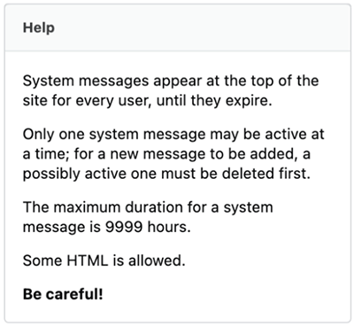 NOTE: Read the help box in the upper-right corner of the page for important details about the duration and formatting of system messages.