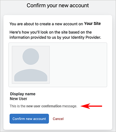 Use this message to communicate with new users before they finalize the account confirmation process.