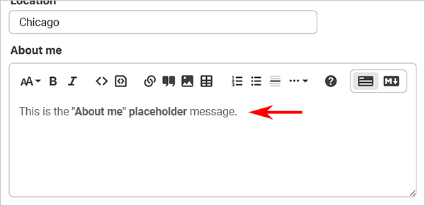 "About me" placeholder