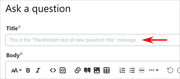 Customize this message to pre-populate the question Title with text that will help users write effective question titles.