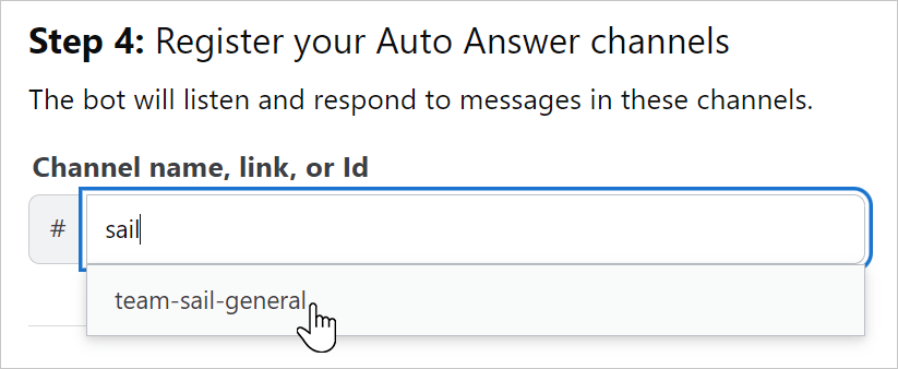In the "Step 4" section, add the Slack channel(s) that the app will be able to access with one of these methods: