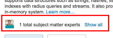 All users can click Show all to see which team members are SMEs for a particular tag.