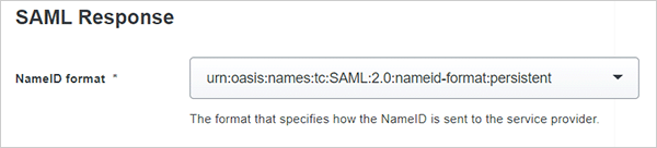 NameID format Set this to the option that ends in :persistent (for example: urn:oasis:names:tc:SAML:2.0:nameid-format:persistent).