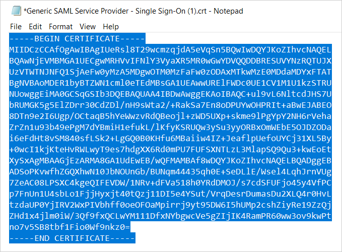 Copy the entire text of the certificate, including "-----BEGIN CERTIFICATE-----" and "-----END CERTIFICATE-----".