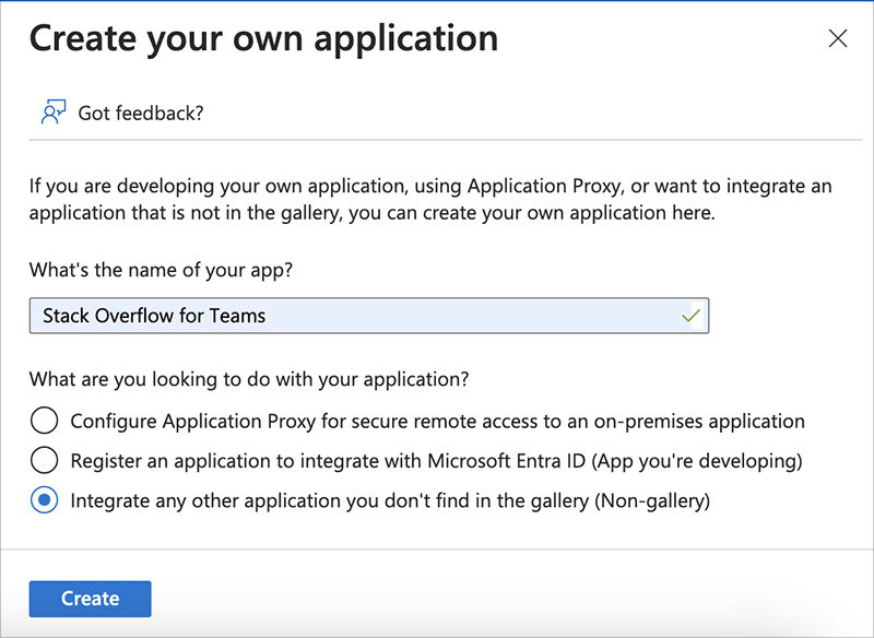 Enter a name for your app, such as "Stack Overflow Internal".