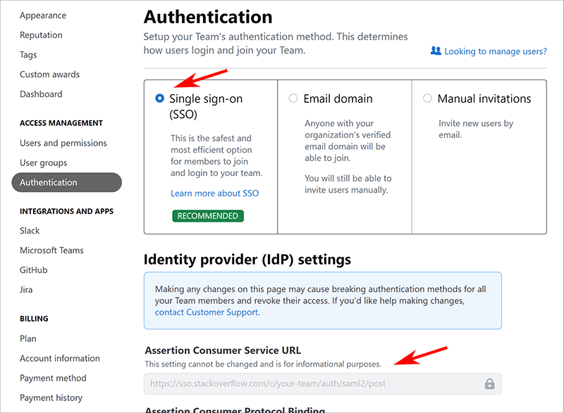 - Finalize authentication settings on Stack Overflow Internal