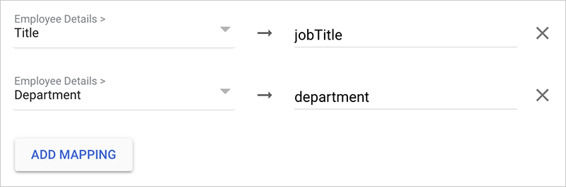 - Department (optional) Set this to the Google app attribute you specified for department (for example: department).
