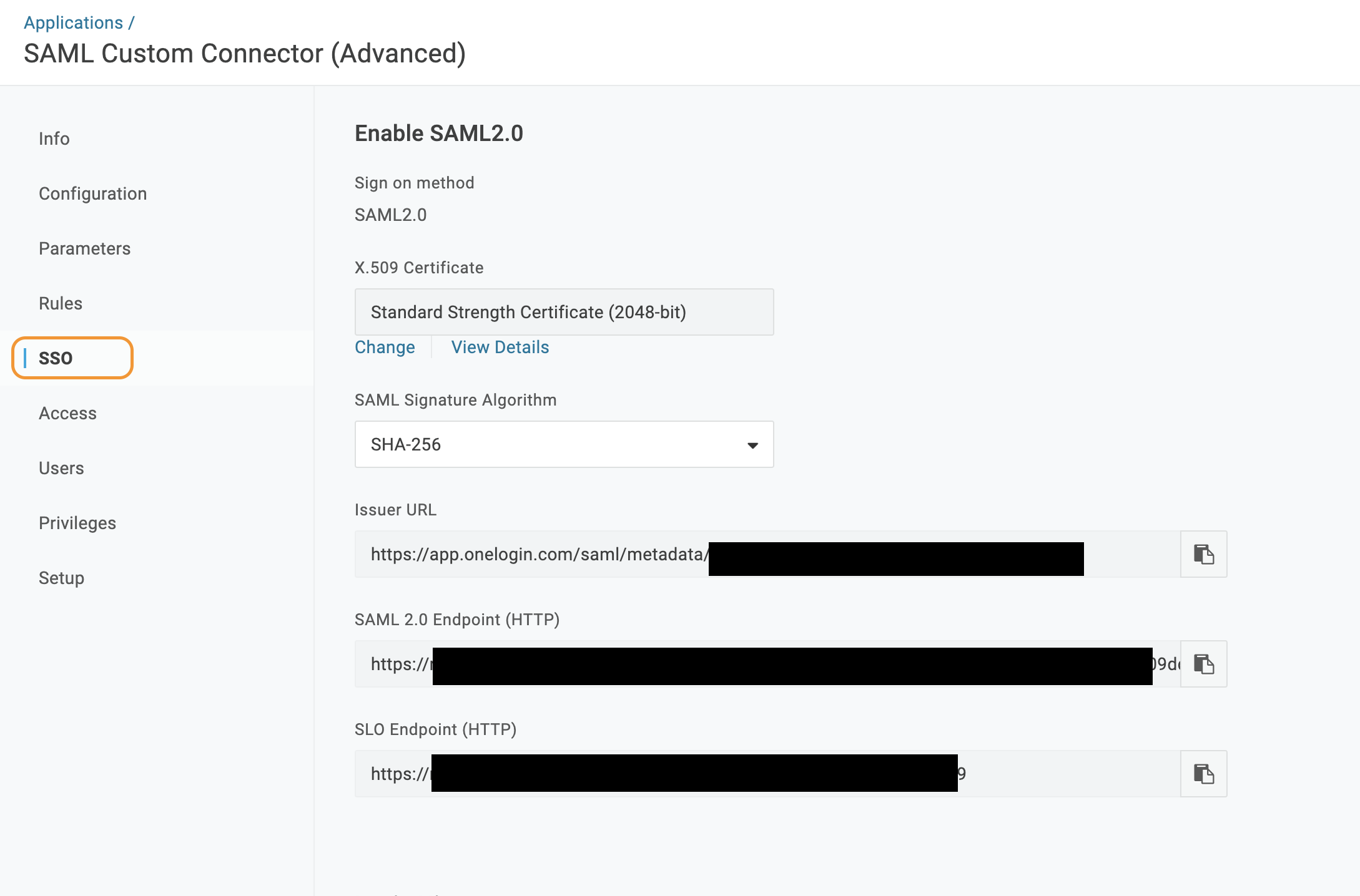 On OneLogin click the SSO tab