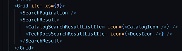 Replace this code with the snippet found in the Backstage Customizing Search documentation as below: