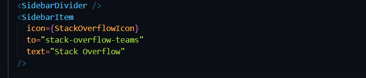 packages/app/src/components/Root.tsx. Scroll down to locate theSidebarItemsection. Here you'll add a new sidebar item with the Stack Overflow logo. In the UI, clicking the logo will direct users to the route we built earlier.