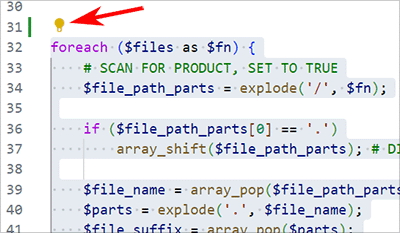 You can also select a block of code for the extension to explain. After you select a block of code, look for a yellow light bulb button.