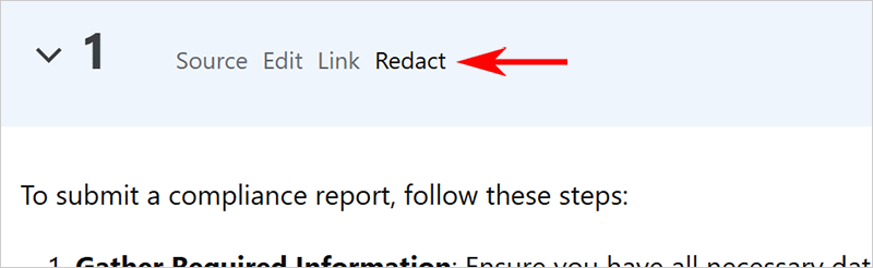 Moderators can access redaction controls when viewing the revision history of a question, answer, or article. One of the options on a revision will be to Redact the revision. This allows the moderator to edit and resubmit the redaction.
