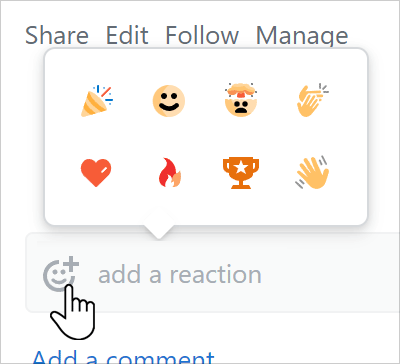 To add a reaction, click the smiley face + button below the post options (Share, Edit, etc.). You'll see a selection window, which contains eight available reactions. Hover over any reaction to see its label. To apply a reaction to the post, click that reaction. There's no limit to the number of reactions you can apply to a post.