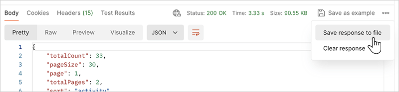- For JSON file import, an appropriate tool to save the API response as a JSON file.