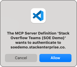 You'll navigate to your Stack Internal Enterprise site to log in via SSO. Click Allow.