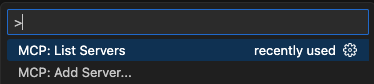 In the "Search Extensions…" box, enter “>MCP” and select MCP: List Servers.