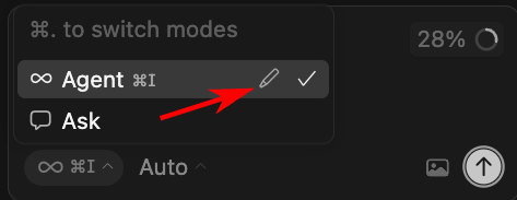 Click Switch Agent Mode at the bottom of the chat area.