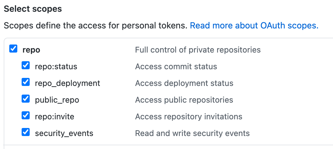 The token will need the repo scopes to work.