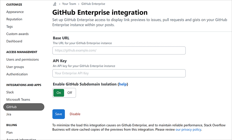 The GitHub integration requires a GitHub user to act as a bot account for the instance. We strongly recommend creating a new GitHub bot user account for Stack Internal Enterprise and generating a personal access token for this user.